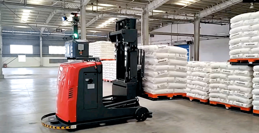 ①32臺前移式堆垛AGV,該車型最大載重3T,舉升高度3M,采用新一代激光動態(tài)建圖導航技術,該技術可實時掃描場景動態(tài)建圖,同時,基于領先的高精度定位和伺服控制感知技術,無人叉車可平穩(wěn)、高效、安全的進行貨物堆疊作業(yè);