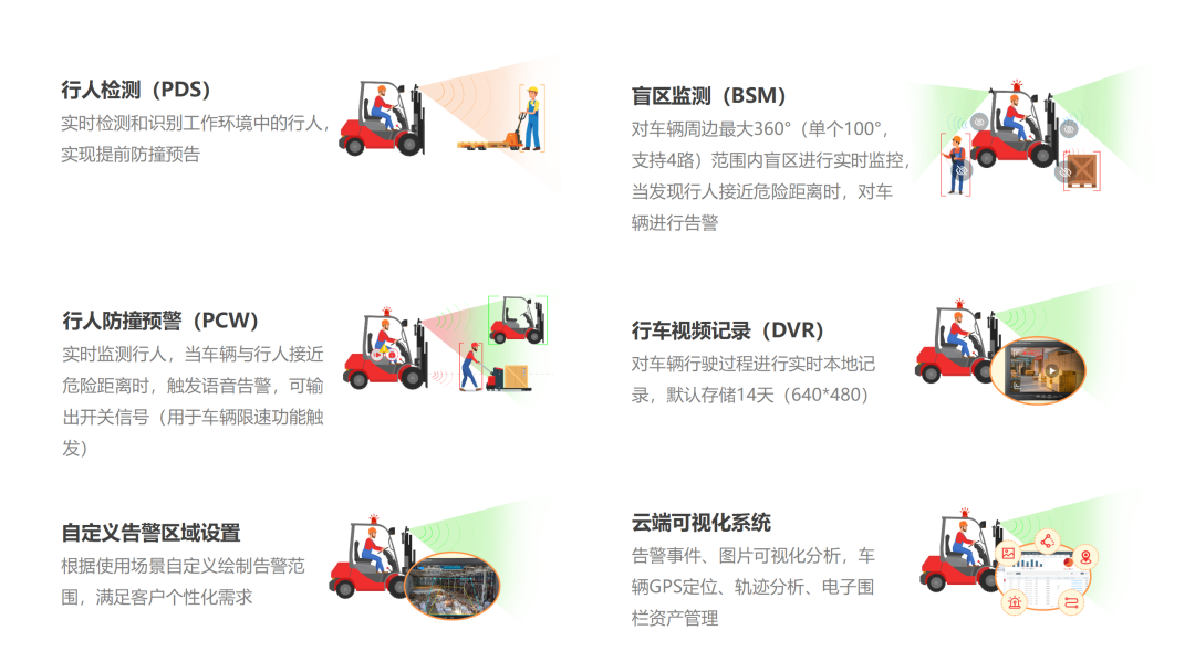 愛動ADAS高級駕駛輔助系統(tǒng),基于國產(chǎn)AI芯片的嵌入式智能終端,通過部署在車輛不同位置的多路攝像頭,可對周圍的人、物進(jìn)行實(shí)時(shí)檢測、識別、跟蹤,對其位置進(jìn)行探測,在預(yù)測潛在發(fā)生危險(xiǎn)情況時(shí),進(jìn)行聲光電告警并輸出信號并進(jìn)行控速,可有效防止車輛碰撞等事故發(fā)生。既滿足了新規(guī)要求,又能切實(shí)地保證車輛的運(yùn)行安全。