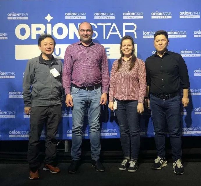 獵戶(hù)星空歐洲合作伙伴在BBB展與機(jī)器人合影
