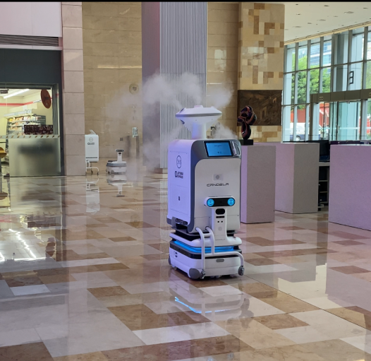 在南方醫(yī)科大學(xué)深圳醫(yī)院里,坎德拉科技燭光醫(yī)療智能消毒機(jī)器人常態(tài)化地參與了醫(yī)院門(mén)診大廳與健康管理中心的日常消毒防疫等相關(guān)工作。