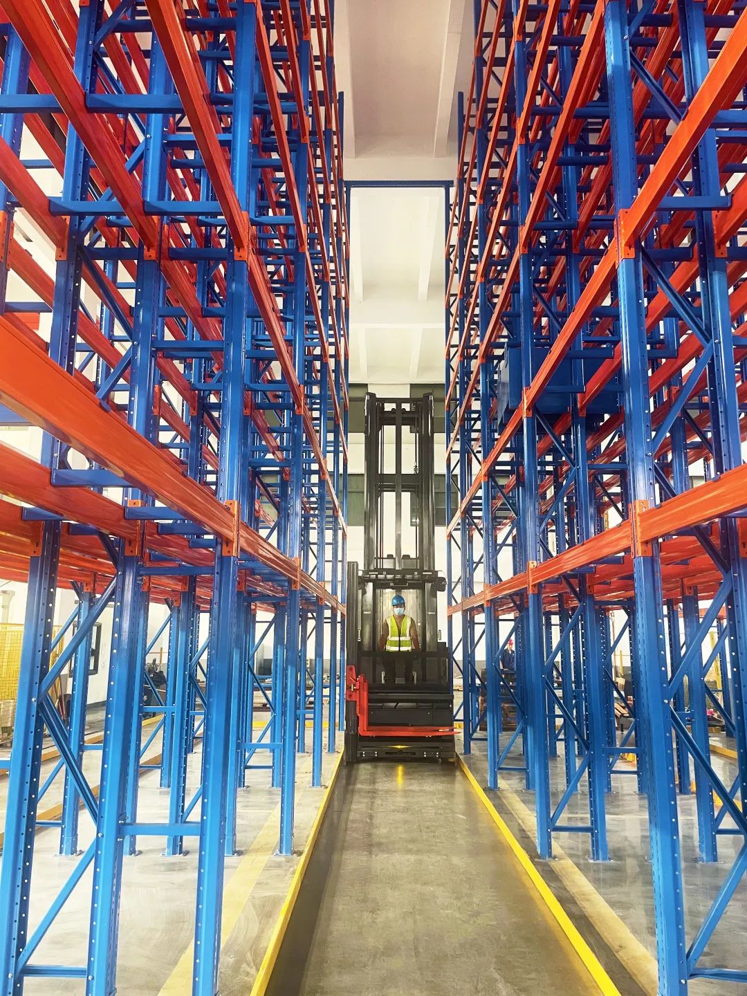 2、MCC16人上型三向叉車通道距離1.65米,庫容率提升150%;