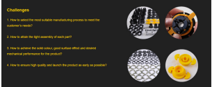 2009年初,公司來到RPWORLD尋求幫助開發(fā)定制產(chǎn)品。產(chǎn)品特點(diǎn)是結(jié)構(gòu)復(fù)雜,對(duì)真色/純色的要求,以及具有特定機(jī)械性能特點(diǎn)的材料。最初作為原型生產(chǎn)的零件也將用作成品。每批的需求是幾十套,其設(shè)計(jì)可能需要修改以響應(yīng)不斷變化的市場需求。