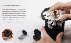結(jié)合 SLA、聚氨酯鑄造和 CNC 銑削。由于產(chǎn)品結(jié)構(gòu)的限制,CNC 加工不是一個(gè)可行的選擇,因?yàn)榈湫团蔚某杀緦⒊^ 100,000 美元,并且大部分零件需要重新設(shè)計(jì)。而且,該工藝不適合小批量的要求。