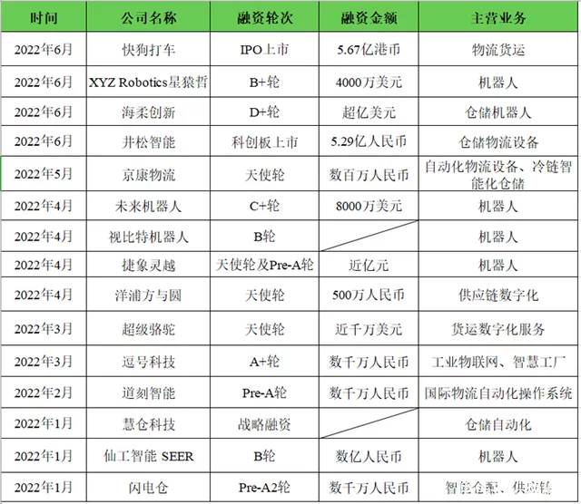 在全球IPO速度放緩,融資規(guī)??傮w下降的大環(huán)境下,智能物流領(lǐng)域依然保持較高的投融資熱度。今年6月以來,智能倉儲物流企業(yè)井松智能登陸科創(chuàng)板,首日漲57%。倉儲物流機(jī)器人企業(yè)海柔創(chuàng)新獲過億美元D+輪融資。此外,致力于智慧倉儲領(lǐng)域的星猿哲也完成了B+輪,共計4000萬美元的融資。