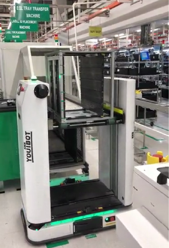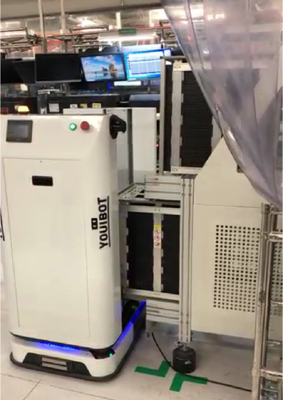 優(yōu)艾智合應(yīng)用5臺(tái)輥筒移載機(jī)器人,執(zhí)行上料板機(jī)自動(dòng)對(duì)接、下料板機(jī)自動(dòng)對(duì)接作業(yè),專門解決SMT產(chǎn)線料箱在上板機(jī)、下板機(jī)、緩存線之間反復(fù)流轉(zhuǎn)問(wèn)題,實(shí)現(xiàn)上下料作業(yè)物流自動(dòng)化升級(jí)。