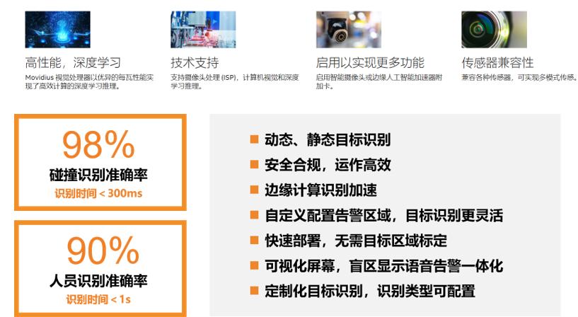 利用安裝在工業(yè)車輛上的攝像頭進行感應和探索車輛周圍環(huán)境,進行靜態(tài)、動態(tài)物體的識別、偵測和追蹤,提前讓駕駛員察覺到可能發(fā)生的危險,并采取自動減速及制動措施,有效提升駕駛安全性。