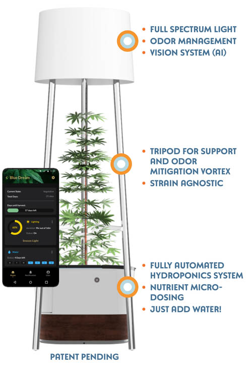 Annaboto的設(shè)計是為了幫助普通人在家里種植自己的大麻。該系統(tǒng)有一個全光譜燈,一個氣味管理系統(tǒng),一個視覺系統(tǒng),一個三腳架,一個氣味緩解渦流,以及一個全自動水培系統(tǒng)。Boundless公司正在向預(yù)購該產(chǎn)品的客戶提供999美元。