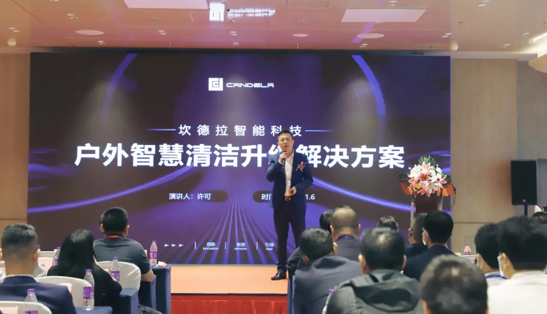 坎德拉智能科技作為本次大會承辦單位之一,同時也是全場景最優(yōu)智能地面清潔機器人解決方案提供商。出席本次大會的坎德拉智能總經理許可,針對物業(yè)產業(yè)、清潔保潔等相關產業(yè)帶來了智慧清潔升級解決方案講解。陽光S200作為本年度環(huán)衛(wèi)新品,憑借“更干凈、更省心、更智能”核心功能亮點。專業(yè)清掃結構設計、厘米級貼邊清掃、塵濾自清潔等功能加持下,讓環(huán)衛(wèi)清掃朝著更干凈的趨勢發(fā)展。而且覆蓋式清掃及智能伸縮邊刷也讓環(huán)衛(wèi)清掃變的更為省心,360°環(huán)境感知和無人駕駛技術的加持下,安全性也有了保障,能夠自主規(guī)劃路徑和智能識別垃圾。眾多核心功能加持下,陽光S200一經面世便獲得了眾多物業(yè)運營單位及專家組的認可。在會上,更是透露了即將推出的室內清潔機器人,將打造以室外智慧環(huán)衛(wèi)創(chuàng)新模式+室內智慧清潔模式,構建智慧社區(qū)清潔更多可能性,助力物業(yè)行業(yè)降本、增效、提質。