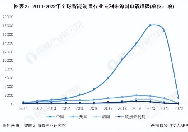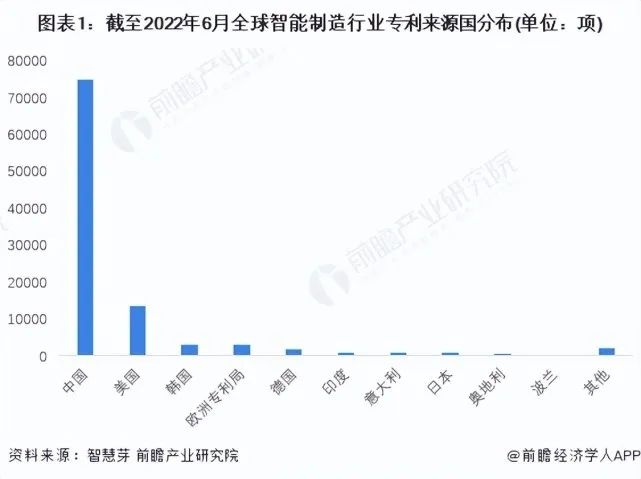 目前,全球智能制造行業(yè)第一大技術(shù)來源國是中國,截止2022年6月15日,中國智能制造相關(guān)專利數(shù)量為74912項,占全球智能制造專利數(shù)量的74%。