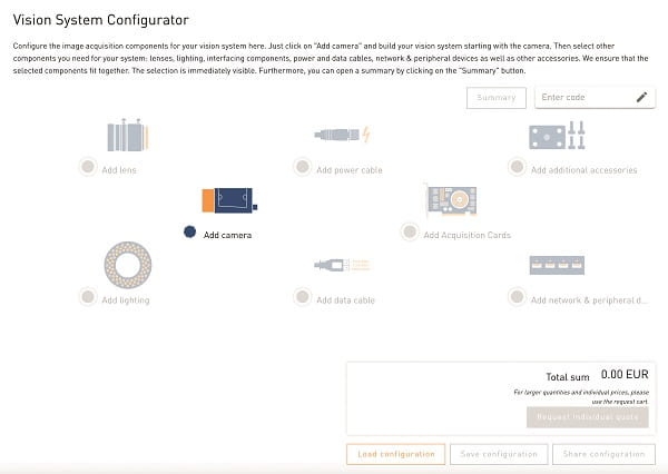 視覺(jué)系統(tǒng)配置器工具簡(jiǎn)化了選擇過(guò)程,允許您定制整個(gè)視覺(jué)系統(tǒng)以滿足您的要求。