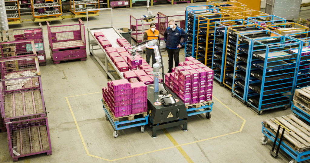 SINA 實(shí)現(xiàn)了從進(jìn)貨到生產(chǎn)線的內(nèi)部物流和物料搬運(yùn)的自動化。圖片:universal-robots
