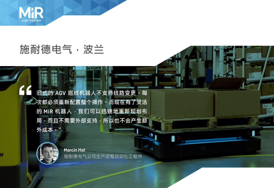 ?憑借 MiR 機(jī)器人的易用性,施耐德電氣工廠能夠快速部署機(jī)器人,而且在員工中得到了廣泛接受。