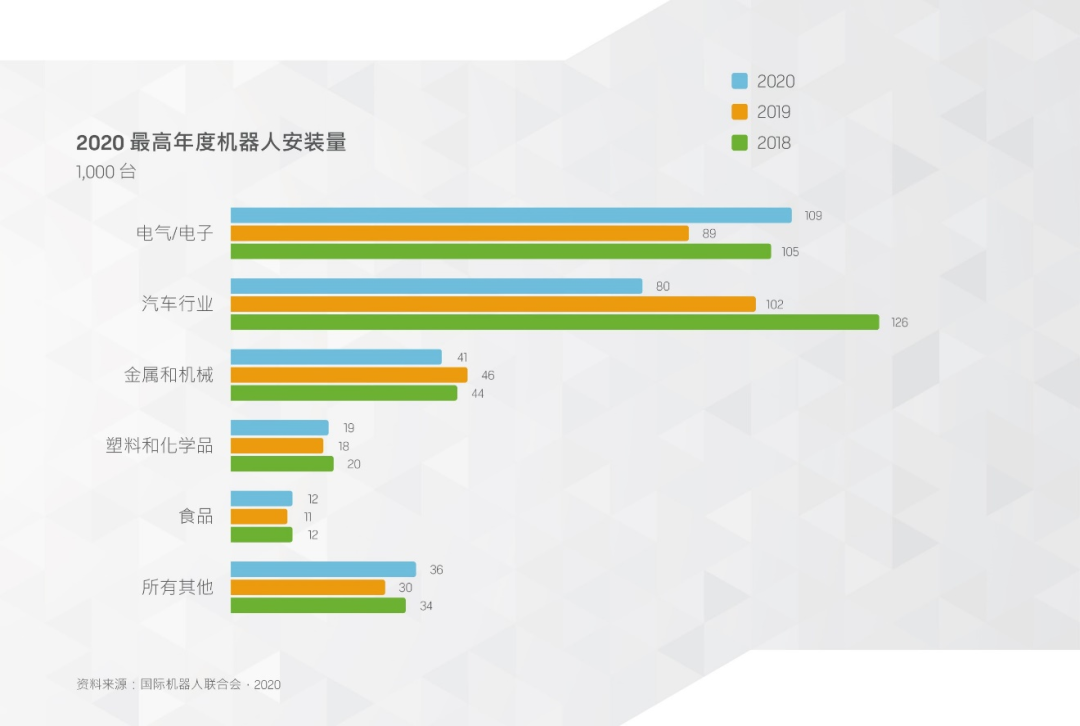 近年來(lái),機(jī)器人在電子行業(yè)的應(yīng)用方興未艾, 2020 年成為機(jī)器人歷史上的一個(gè)具有重大意義的時(shí)刻,汽車行業(yè)不再是工業(yè)機(jī)器人的最大客戶,而是被電子行業(yè)所取代。出現(xiàn)這種轉(zhuǎn)變的主要原因之一是機(jī)器人能夠執(zhí)行的任務(wù)范圍在不斷擴(kuò)大。對(duì)于利潤(rùn)率極低的電子制造商而言,機(jī)器人自動(dòng)化是可行性非常高且經(jīng)濟(jì)實(shí)用的商業(yè)策略。機(jī)器人可在整個(gè)價(jià)值鏈和生產(chǎn)周期中使用,從切割金屬外殼到在板塊上裝配微型元器件、執(zhí)行質(zhì)量檢測(cè)、包裝和碼垛成品,以及在整個(gè)設(shè)施內(nèi)運(yùn)輸元器件和貨物。