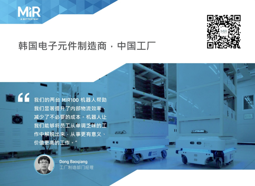 這家電子元件制造商部署了 MiR100 機(jī)器人,用于生產(chǎn)材料和成品的內(nèi)部運(yùn)輸。通過(guò) MiRFleet 管理軟件,機(jī)器人可以連接到公司的內(nèi)部 WMS 系統(tǒng),在應(yīng)該運(yùn)輸材料或拾取成品時(shí),直接接收命令。