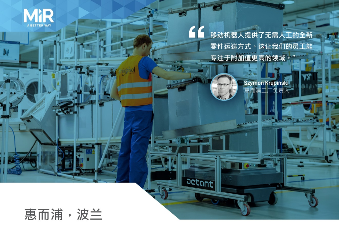 ?MiR 機(jī)器人能夠提高安全性,讓惠而浦能夠避免人員和設(shè)備(如叉車)之間出現(xiàn)碰撞事故。