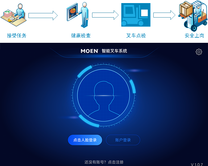 傳統(tǒng)叉車主要依靠人工駕駛,因此駕駛員個(gè)人的健康狀況與車輛的狀況是執(zhí)行任務(wù)前一項(xiàng)必不可少的檢查事項(xiàng)。海豚之星定制了完整的上崗管理,從接受任務(wù)到安全上崗,層層檢查,提前排查可能存在的安全隱患。