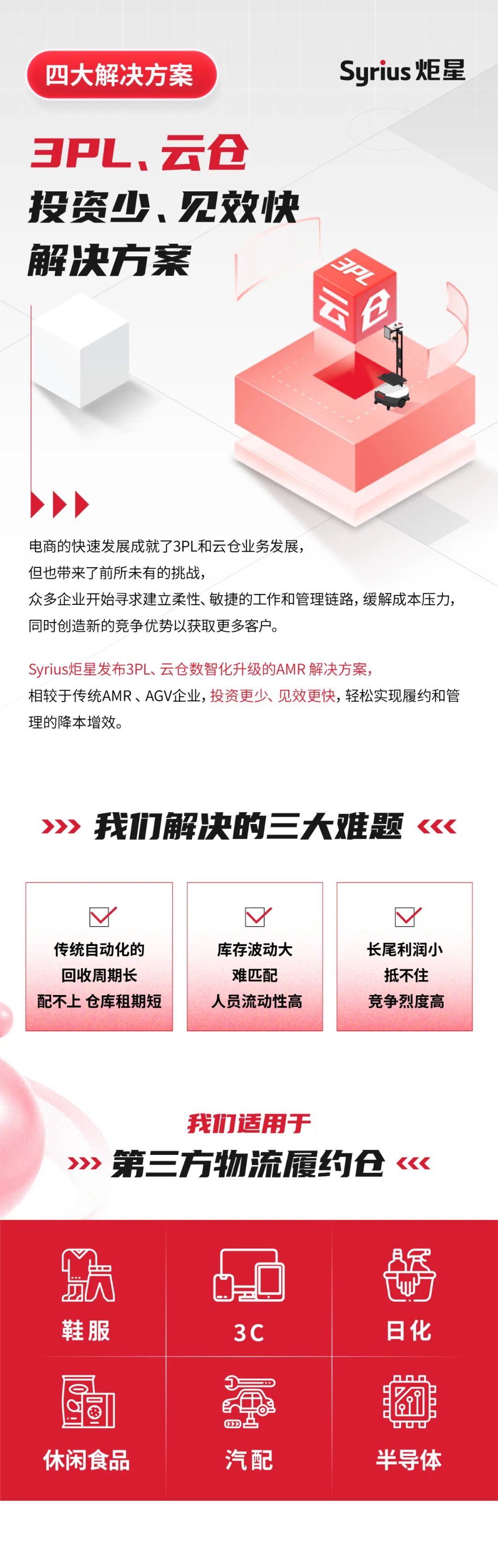 Syrius炬星是專注自主移動(dòng)機(jī)器人(AMR)研發(fā)與制造的國家高新技術(shù)企業(yè),致力于打造基于AMR人機(jī)協(xié)作的智能物流解決方案。我們的骨干團(tuán)隊(duì)深耕機(jī)器人產(chǎn)業(yè),成員曾在谷歌、英偉達(dá)、阿里巴巴、亞馬遜、華為、大疆創(chuàng)新等企業(yè)任核心高管。