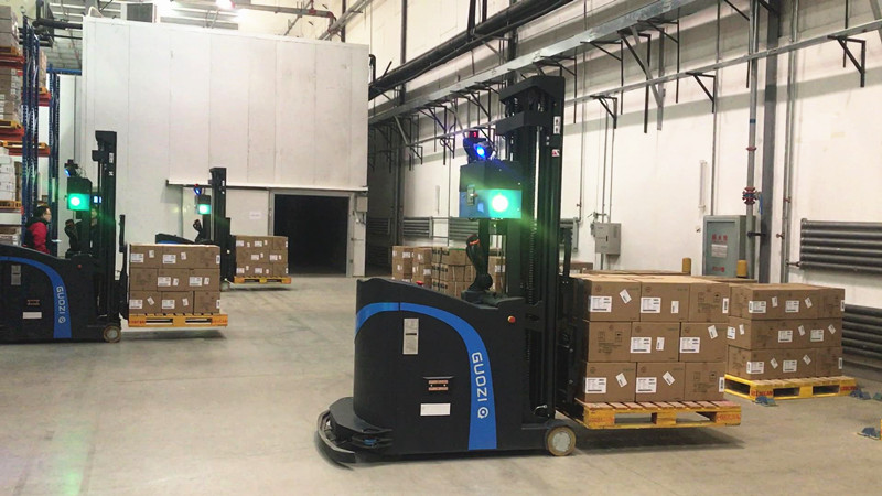 國自為東北地區(qū)最大的某醫(yī)藥集團(tuán)提供智能搬運(yùn)解決方案,使用多臺高位前移叉式AGV對藥品供銷配運(yùn)環(huán)節(jié)中的驗(yàn)收、存儲、分揀、配送等作業(yè)過程優(yōu)化,采用“高位安全”和“自動標(biāo)定”技術(shù)對超過6米的貨架完成貨物存取作業(yè),自動識別貨物與貨位之間的偏差,保證平穩(wěn)出入庫,有效避免安全事故,大幅提高藥品庫房物流自動化水平。