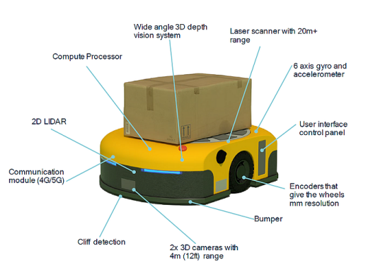 AMR 使用傳感器和攝像頭不僅可以感知附近的物體,還可以了解它們之間的物理關(guān)系。這意味著處理來自以下組件的提要: