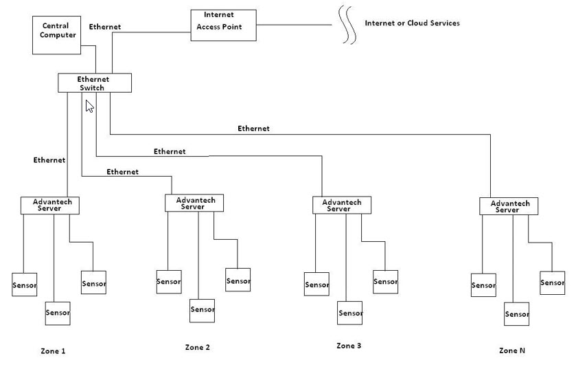 例如,我們可以把一個中央計算機系統(tǒng)想象成主站,它通過以太網(wǎng)交換機連接到串行控制臺服務器。這為每個區(qū)域提供了高速帶寬,其中控制臺控制器充當了與各個傳感器的互連。