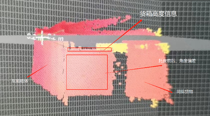 不同的貨廂尺寸和不確定的貨車??课恢?,是叉式AGV實(shí)現(xiàn)智能裝卸貨的核心難點(diǎn),它們會(huì)極大地影響叉式AGV“貨車裝廂”的定位精度。SLIM前移式機(jī)器人貨車裝廂國(guó)自深入探索貨廂識(shí)別、貨廂內(nèi)動(dòng)態(tài)高精度相對(duì)定位、貨廂自適應(yīng)進(jìn)叉路線規(guī)劃和控制等技術(shù),使叉式AGV通過精準(zhǔn)定位匹配后進(jìn)入貨廂,并自動(dòng)識(shí)別貨廂高度和貨物狀態(tài),進(jìn)行自動(dòng)糾偏后完成裝卸任務(wù)。