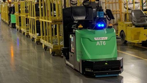 從2020年開始,全球供應(yīng)鏈運(yùn)營商GEODIS加強(qiáng)了其在達(dá)拉斯的一個(gè)最繁忙的配送中心的取貨、送貨和收貨過程。GEODIS的工程副總裁Eric Douglas說,GEODIS部署了一支由Vecna的幾輛自動(dòng)托盤車(APT)(一種AMR)以及一個(gè)軟件運(yùn)行的車隊(duì)協(xié)調(diào)系統(tǒng)組成的車隊(duì)。