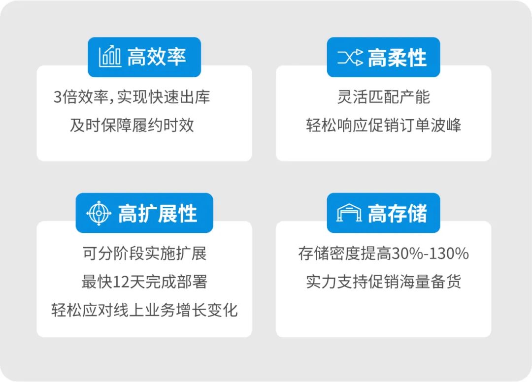 在商業(yè)環(huán)境不斷變化、訂單結(jié)構(gòu)愈發(fā)復(fù)雜的情況下,物流機(jī)器人的價(jià)值優(yōu)勢愈發(fā)凸顯。作為物流機(jī)器人領(lǐng)域的引領(lǐng)者,極智嘉的倉儲機(jī)器人解決方案能夠?yàn)殡娚炭蛻魩砀咝?、高柔性、高擴(kuò)展性和高存儲四大核心價(jià)值,助力企業(yè)突破掣肘,更自信、從容地應(yīng)對未知商業(yè)挑戰(zhàn)。