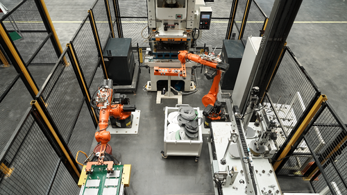 白色的沖壓設(shè)備通過軌道機(jī)串聯(lián)起來,完成一站式的切割、鉆孔和沖壓,不需要人工操作。當(dāng)集裝箱通過履帶機(jī)向前移動(dòng)到一個(gè)固定的目的地時(shí),提升機(jī)迅速上升,將集裝箱運(yùn)送到裝配車間。得益于5G,在這個(gè)工廠里,每15秒就有一臺(tái)洗衣機(jī)從生產(chǎn)線上下來,而在不久的將來,這個(gè)數(shù)字將減少到10。