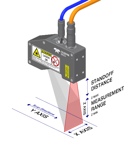 傳感器上成像的激光線的距離、角度和位置被用來計(jì)算物體沿激光線的高度(Z)和寬度(X)。兩個(gè)連續(xù)輪廓之間的已知位移提供了沿運(yùn)動的長度(Y)。