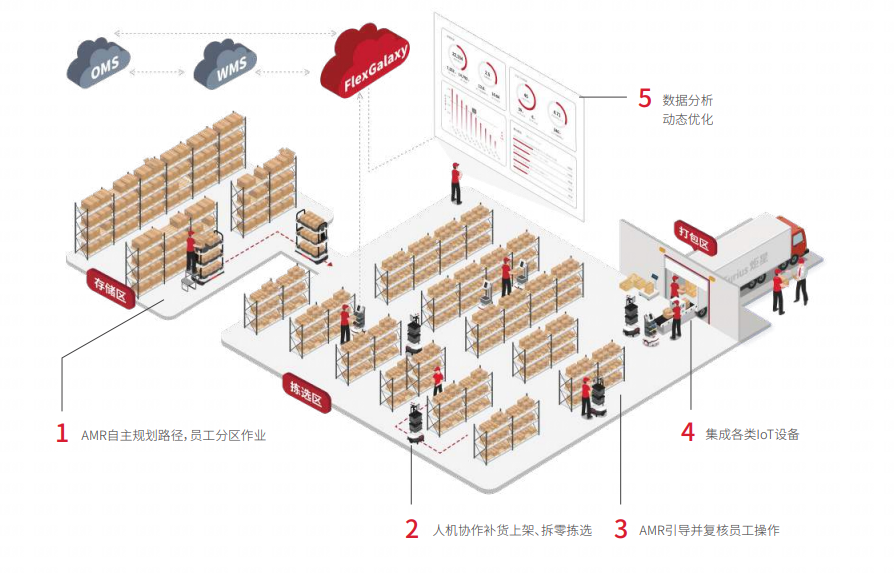 針對自主移動機器人自研的操作系統(tǒng),從系統(tǒng)底層出發(fā),自下而上重構(gòu)AMR自主移動機器人的生態(tài),一方面更適用于倉儲物流的使用環(huán)境,另一方面,通過強大算力降低對硬件的需求,最終降低整機的價格,得以為更多企業(yè)提供自動化的選擇空間。而后臺云服務(wù)系統(tǒng),能夠廣泛的介入大部分主流倉儲管理系統(tǒng),通過模塊化、高復(fù)用的組件,實現(xiàn)與更多場景的快速匹配。