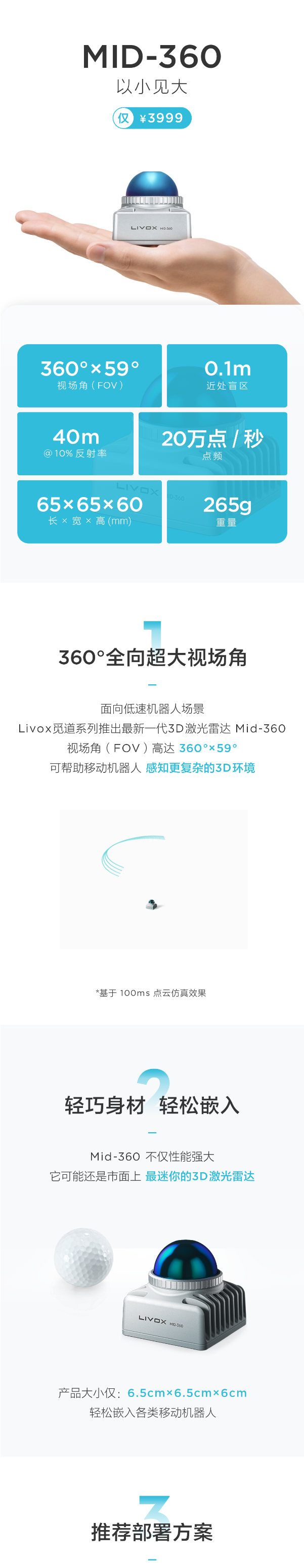 Livox是一家激光雷達傳感器研發(fā)商,旗下?lián)碛衖d—40和Mid—100系列,以及針對遠距離探測的Tele—15和針對視場(FoV)的Horizon等產(chǎn)品,廣泛應用于自動駕駛、機器人、無人機、測繪應用等領域。