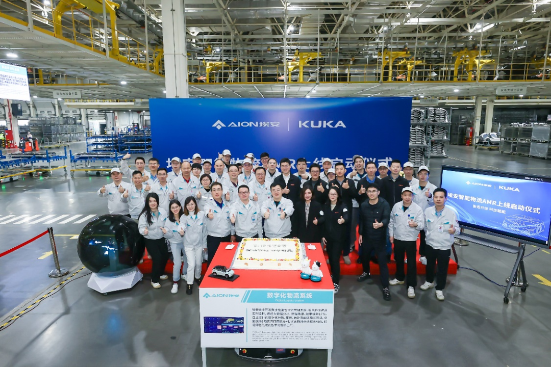 2023年1月12日上午,庫卡物流自動(dòng)化(簡稱KUKA LA)與廣汽埃安(簡稱AION)在位于廣州的埃安第二智造中心項(xiàng)目現(xiàn)場隆重舉行“埃安智能物流AMR上線啟動(dòng)儀式”。