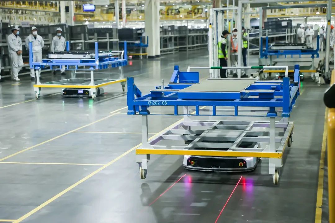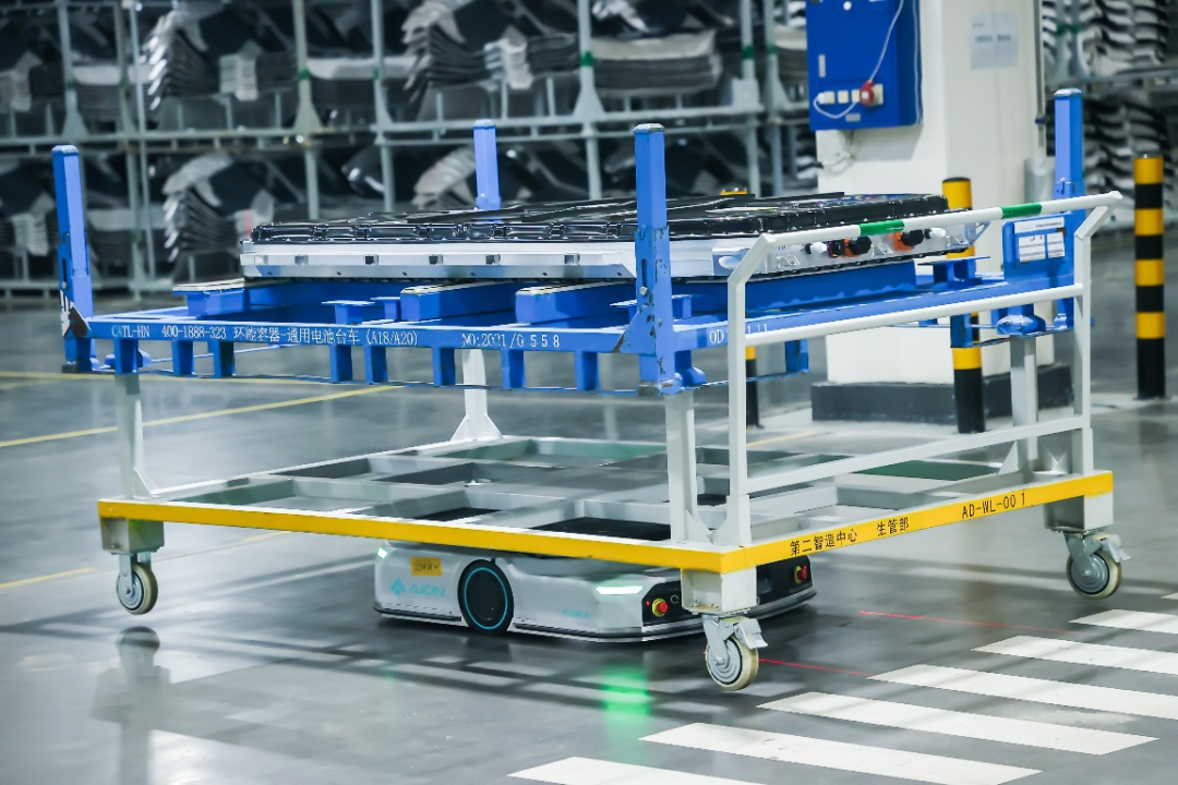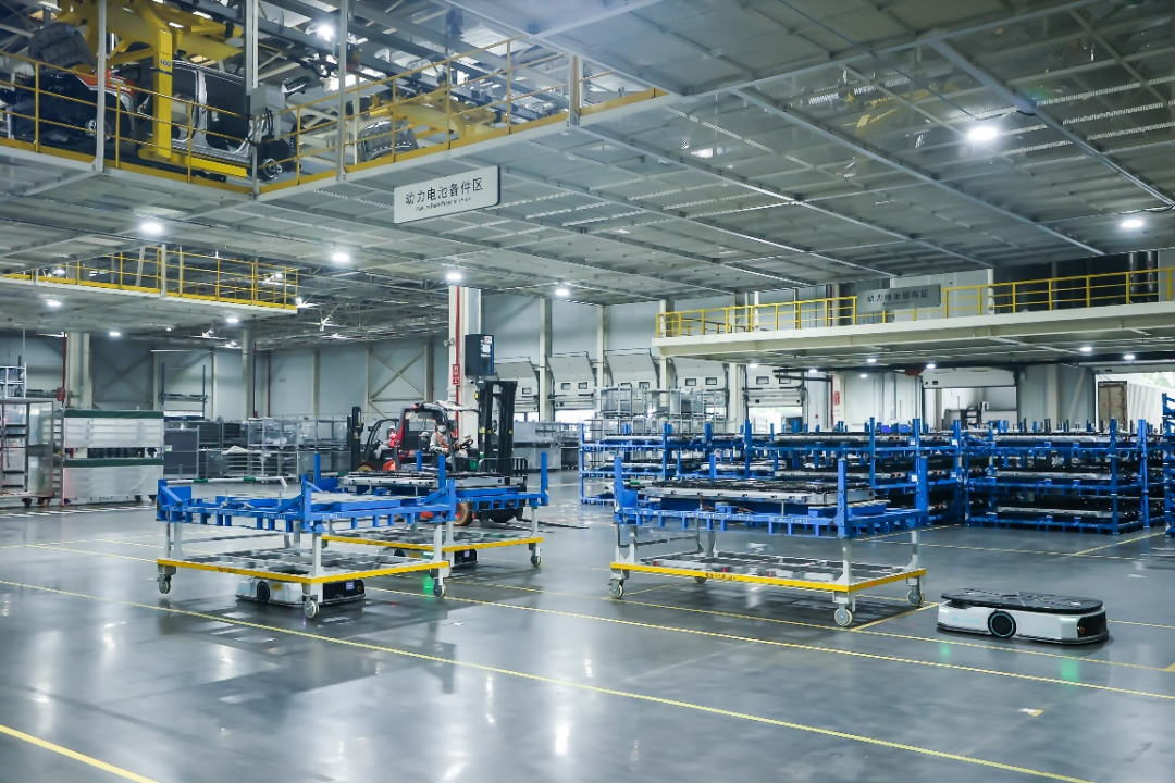 智能物流解決方案提供商庫卡移動(dòng)機(jī)器人,在項(xiàng)目的第一階段為埃安第二智造中心提供了多臺潛伏頂升AMR移動(dòng)機(jī)器人KMP 1500i+K-MReS軟件平臺的智能物流系統(tǒng)解決方案。