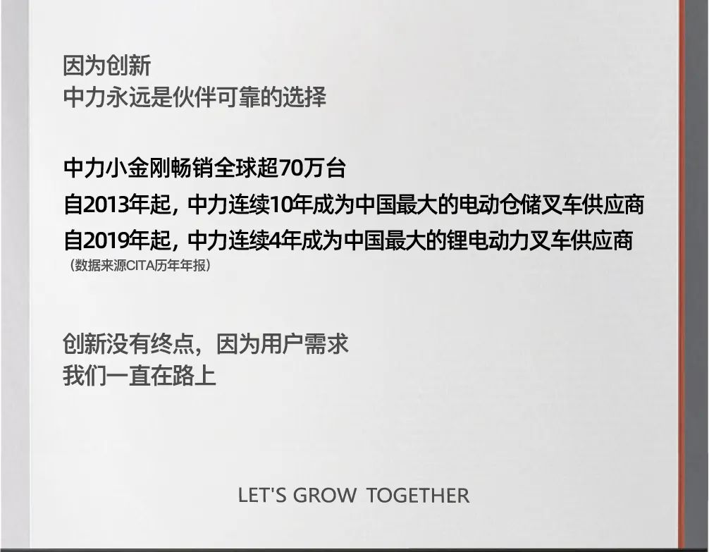 中力的快速發(fā)展,離不開全球用戶、員工、代理商、供應(yīng)商的大力支持,一起改變、共同成長是中力追求的目標(biāo)。