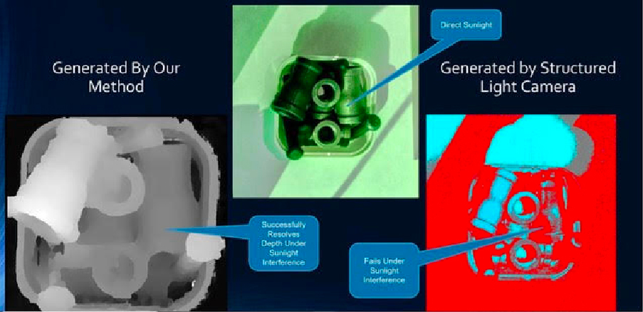 “使用視覺時(shí)你最頭疼的是什么?”的答案似乎總是在照明。4D視覺在環(huán)境光照變化方面非常穩(wěn)健。它使用二維成像,光線越多越好。任何外部光源都會(huì)混淆需要結(jié)構(gòu)光的相機(jī)。一個(gè)很好的例子是自然光在一天中的不同時(shí)間照射到工廠車間的工廠。