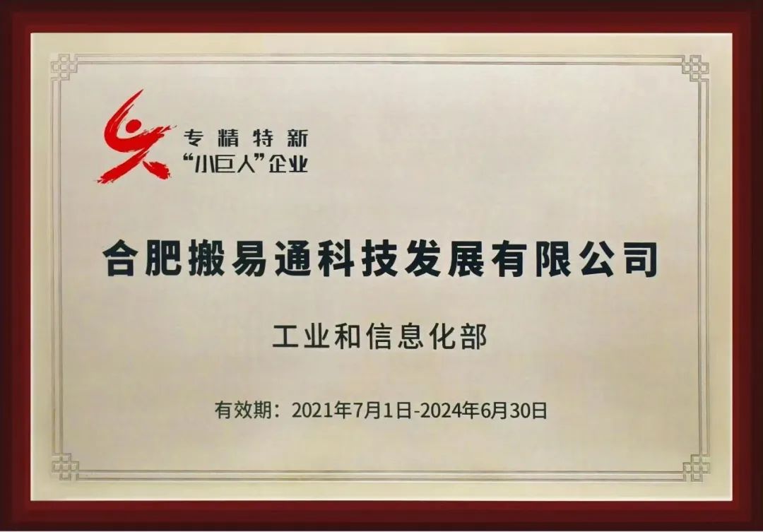 近日,合肥搬易通再添兩項重磅榮譽,安徽省企業(yè)技術(shù)中心和國家專精特新小巨人正式授牌。