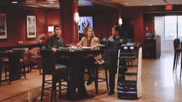 酒店工作人員只需在每層托盤上都裝滿菜品,然后按下屏幕上的開始按鈕。機(jī)器人就開始了一天的配送工作。它滿載著食物和飲料在酒店里來(lái)回奔跑,有時(shí)還要特別注意避開人群和桌椅,總之,它一定會(huì)將食物和飲料平穩(wěn)且安全的送至顧客面前。