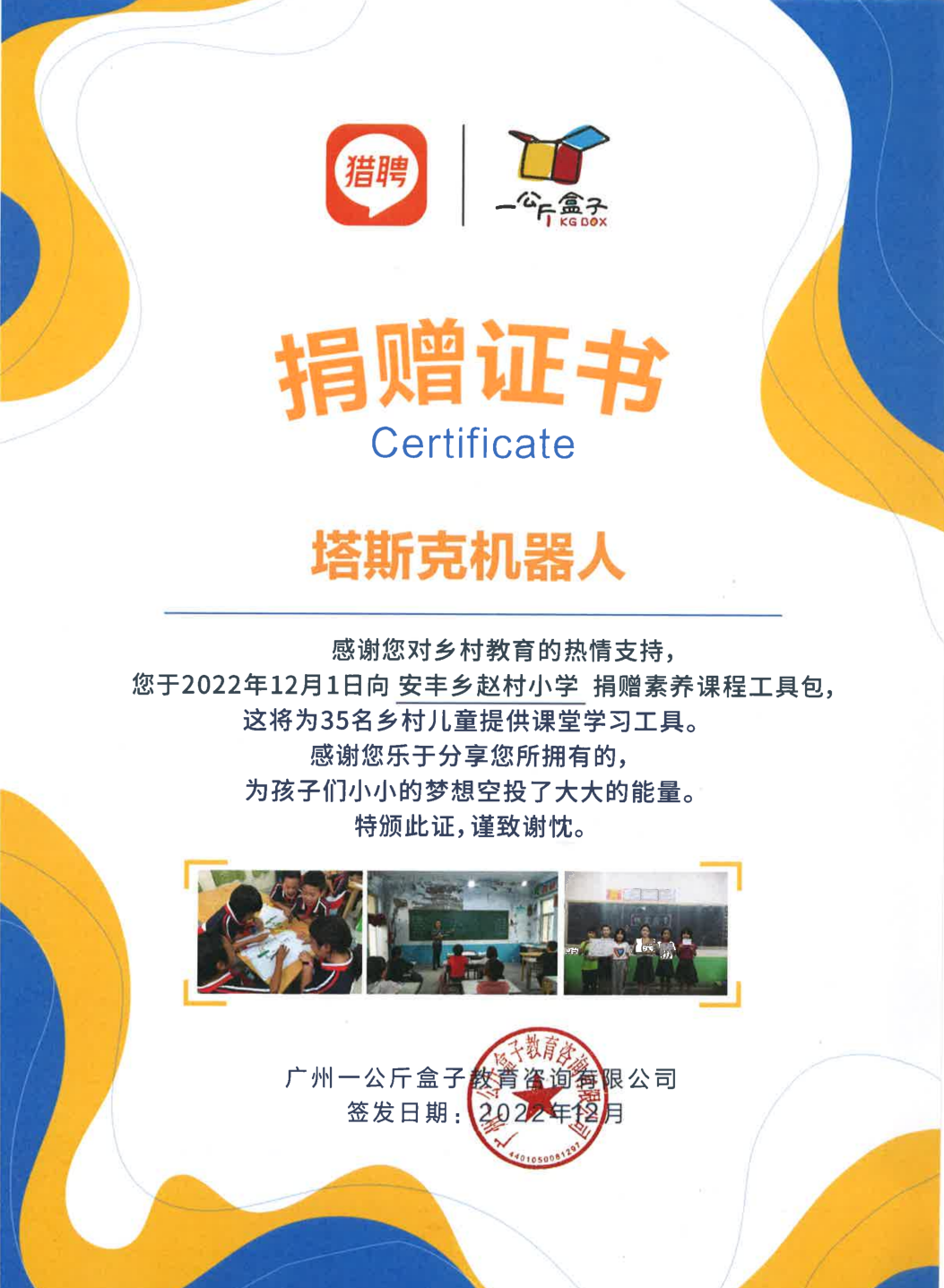 愛心助學(xué)子,善舉暖人心。為支持鄉(xiāng)村教育,塔斯克機器人參與”一公斤盒子“公益組織項目,為安豐鄉(xiāng)趙村小學(xué)捐贈素養(yǎng)課程工具包。
