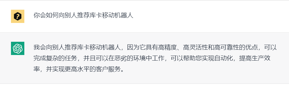 細(xì)心的朋友們應(yīng)該已經(jīng)發(fā)現(xiàn)了,我們在情人節(jié)發(fā)布的《留下你的“告白宣言”,情人節(jié)KUKA AMR專屬好禮送上~》一文中,小庫已經(jīng)和最近大火的ChatGPT打過交道了。