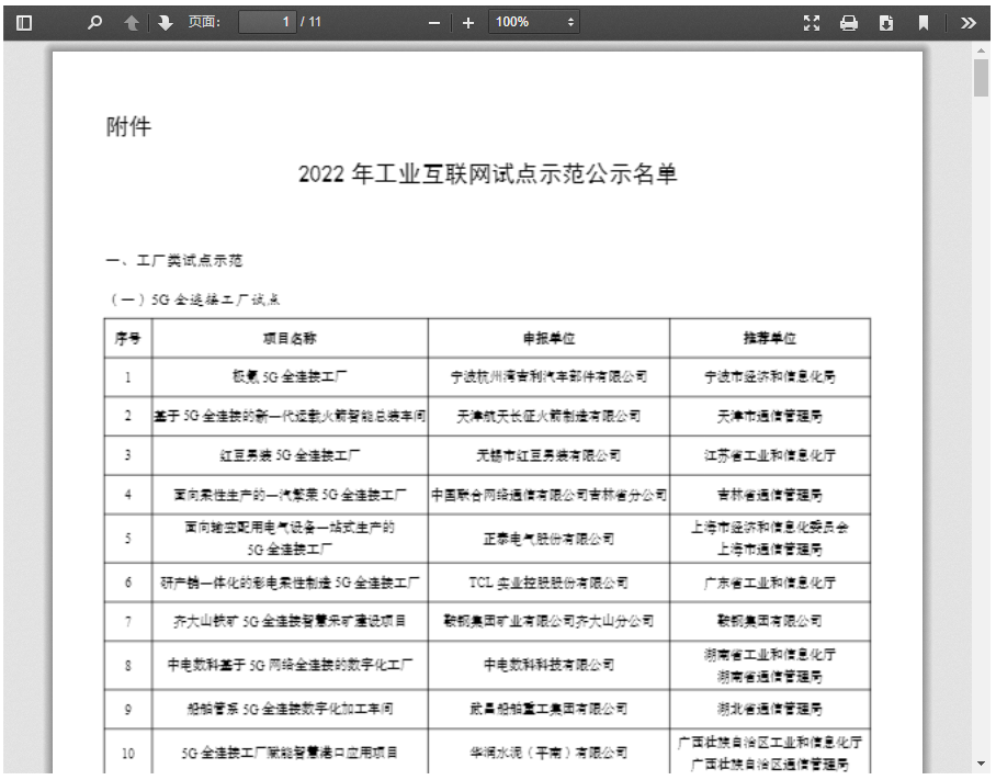 5G全連接工廠是指充分利用以5G為代表的新一代信息通信技術(shù)集成,打造新型工業(yè)互聯(lián)網(wǎng)基礎(chǔ)設(shè)施,新建或改造產(chǎn)線級(jí)、車間級(jí)、工廠級(jí)等生產(chǎn)現(xiàn)場,形成生產(chǎn)單元廣泛連接、IT和OT深度融合、數(shù)據(jù)要素充分利用、創(chuàng)新應(yīng)用高效賦能的先進(jìn)工廠,是目前5G在工業(yè)領(lǐng)域先進(jìn)應(yīng)用的國家最高榮譽(yù)。