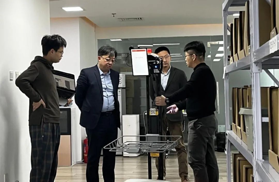 隨后,蘇泳副主席一行觀摩了Syrius炬星“小旋風(fēng)”機(jī)器人的現(xiàn)場模擬演示,就AMR機(jī)器人的應(yīng)用場景,機(jī)器人技術(shù)與中華傳統(tǒng)文化相結(jié)合等話題與Syrius炬星團(tuán)隊(duì)進(jìn)行了現(xiàn)場探討。