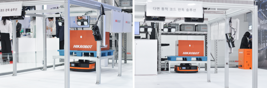本次展臺(tái)共分為兩大核心展示區(qū),品類包括機(jī)器視覺和移動(dòng)機(jī)器人。在這里,能看到機(jī)器視覺在高精度生產(chǎn)及檢測場景中的應(yīng)用,也能直觀感受到智慧內(nèi)物流如何多車協(xié)同。??禉C(jī)器人向全球客戶展示了智慧工廠解決方案