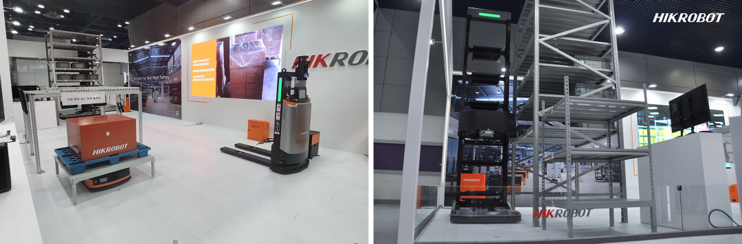 本次海康機(jī)器人展示了叉取、料箱、潛伏三款機(jī)器人產(chǎn)品和解決方案,打造“貨到人”一站式智能揀選模式。潛伏與料箱機(jī)器人“通力合作”,完美利用垂直空間,保障高存儲(chǔ)密度、高揀選效率優(yōu)勢。同時(shí)叉取和潛伏“無縫銜接”,提高出入庫的靈活性和效率。