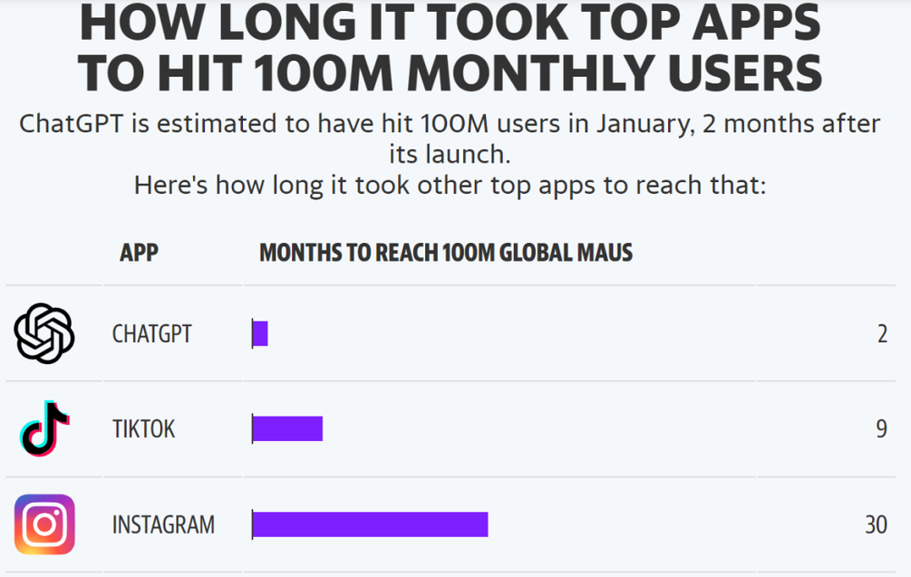 2022年12 月ChatGPT上線, 僅僅兩個月后,ChatGPT月活用戶突破1億,刷新了增長到月活1億用戶的最短時長,成為史上用戶增長速度最快的消費級應用程序。為何ChatGPT這么厲害,它的出現(xiàn)又會顛覆哪些傳統(tǒng)認知?