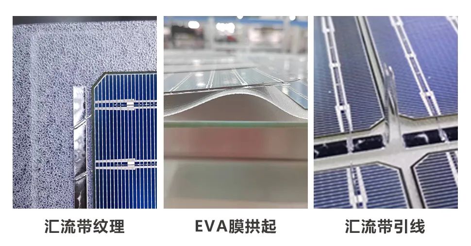 挑戰(zhàn):匯流帶紋理、引出線對(duì)檢測(cè)造成干擾;EVA膜拱起等會(huì)讓焊錫特征呈現(xiàn)隨機(jī)形態(tài);中間匯流帶焊帶呈現(xiàn)交叉、重疊、單根虛焊等多種形態(tài)。