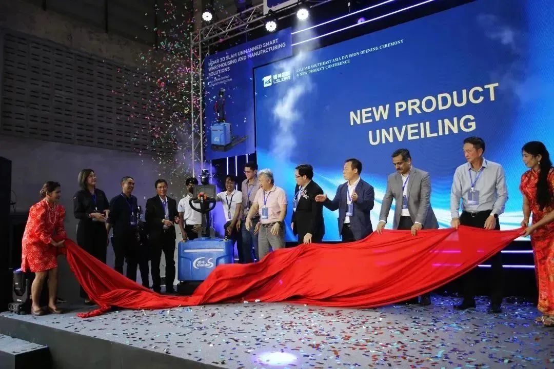 開業(yè)儀式的領(lǐng)導(dǎo)發(fā)言結(jié)束后,接下來(lái)就是萬(wàn)眾期待的新品發(fā)布環(huán)節(jié),各位領(lǐng)導(dǎo)帶著激動(dòng)的心情,上臺(tái)共同揭曉這款重磅產(chǎn)品,這也意味著鐳神智能激光雷達(dá)3D SLAM無(wú)人叉車正式在泰國(guó)亮相!