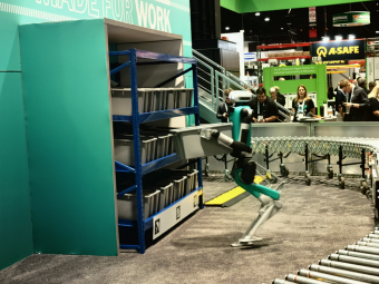 Agility Robotics 的展臺在展會的大部分時間里都擠滿了人,這是有充分理由的。您并不是每天都有機會看到雙足機器人在行動。根據(jù) Agility 的說法,Digit 的演示基于真實的客戶用例,并且在整個四天的展會中都在運行。Digit 是 ProMat 最佳新創(chuàng)新獎的獲得者。