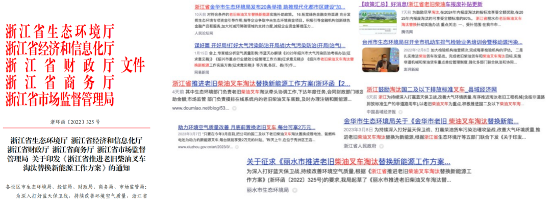 浙江省打響第一槍,率先開展老舊柴油叉車淘汰工作,印發(fā)《浙江省推進老舊柴油叉車淘汰替換新能源工作方案》的通知,省內(nèi)各地先后發(fā)布討論稿!
