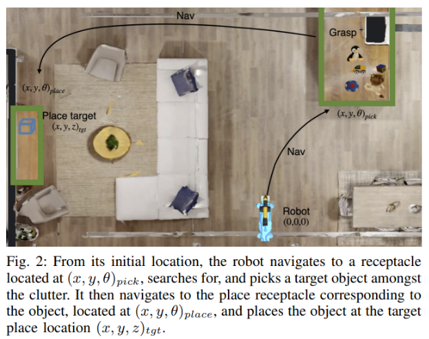 ASC 在使用 HM3D 和 ReplicaCAD 數(shù)據(jù)集構(gòu)建的環(huán)境中使用 Habitat 模擬器在 Spot 上進(jìn)行了測試,其中包含 1,000 多個家庭的室內(nèi) 3D 掃描。然后,模擬的 Spot 機(jī)器人被教導(dǎo)在一個以前看不見的家里四處走動,撿起不在地方的物體,把它們帶到正確的位置,然后把它們放下。后來,這些知識被轉(zhuǎn)移到現(xiàn)實(shí)世界中的 Spot 機(jī)器人中,這些機(jī)器人會根據(jù)它們對房屋外觀的了解自動執(zhí)行相同的任務(wù)。