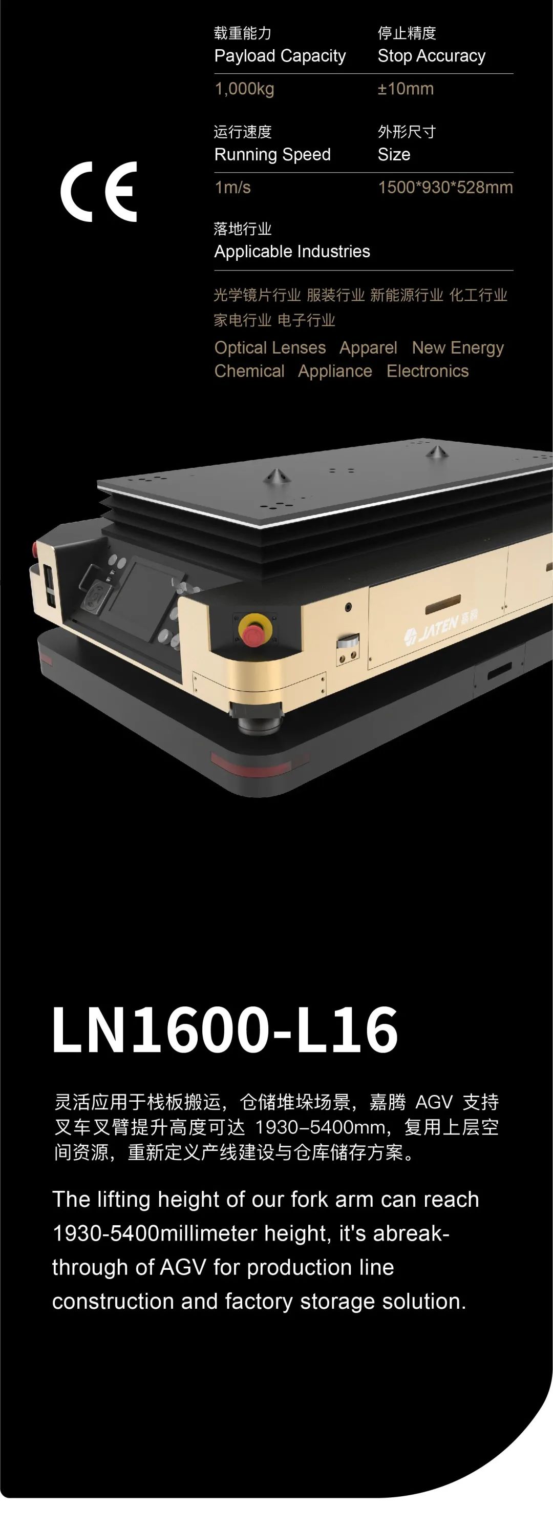 嘉騰是一家全球領先的AGV機器人與智能物流系統(tǒng)提供商,成立于2002年,至今為止,有超過60家的世界500強企業(yè)使用過嘉騰的產(chǎn)品。嘉騰產(chǎn)品廣泛應用于汽車、電子、鋰電池生產(chǎn)、化工、日用品及重型機械設備生產(chǎn)等各種行業(yè)。嘉騰AGV主要用于車間內(nèi)的物料轉(zhuǎn)運或者當作柔性生產(chǎn)線使用,或者用于自動化倉庫的物料存儲與搬運等環(huán)節(jié)。嘉騰秉承“彼此忠誠,相互成就”的經(jīng)營理念,用堅持不懈、精益求精的工匠精神,不斷發(fā)展壯大,解決了很多卡脖子問題,2020年嘉騰被評為國家級專精特新小巨人企業(yè),且多次被CCTV等重要媒體作為先進典型報道!